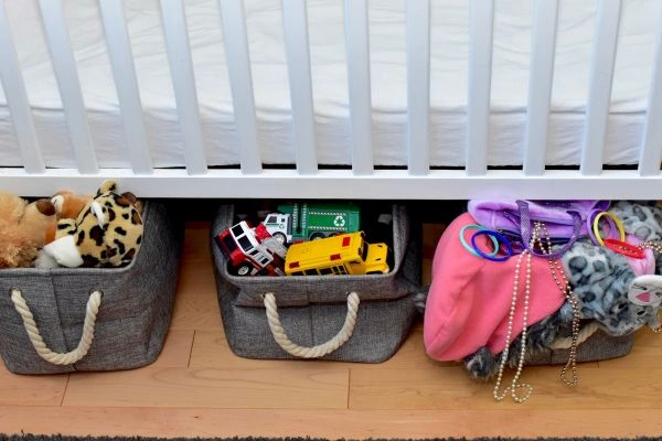 Even if your bed doesn’t have built-in drawers, the space beneath it is too valuable to waste. Rolling bins, baskets, or DIY storage boxes can turn this area into hidden storage for linens, off-season clothing, or spare pillows.