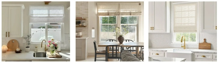 | Modern kitchen | Roman shades | Navy, grey, olive | Polyester blend |