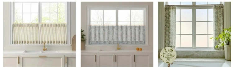 A homeowner in Vermont paired white linen café curtains with vintage brass rods. The half-coverage design let in light from top windows while offering privacy over the sink. The result? A cozy, welcoming kitchen that felt timeless.