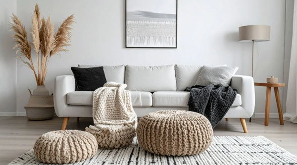 Scandinavian / Minimal Natural materials (jute, wool), neutral colors, simple shapes